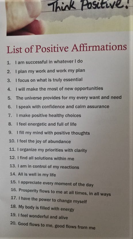 When I was in the hospital a few years ago, I was given a booklet with this truly amazing list of affirmations.